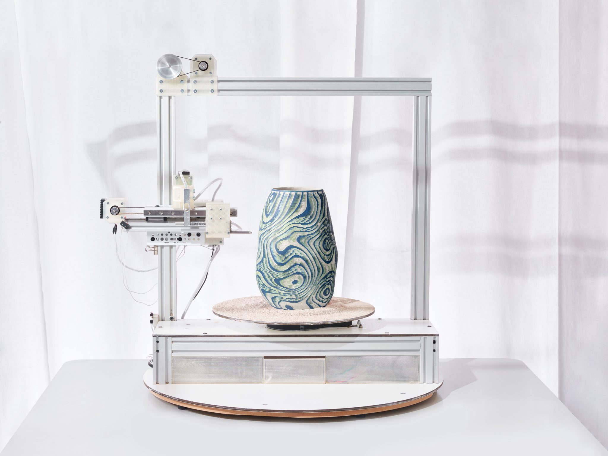 Mit Soft Touch zeigt das Berliner Designstudio JÜNGERKÜHN eine avancierte Form des Digital Craft, in der digitales Werkzeug und keramisches Material in einen echten Dialog treten. Ausgangspunkt ist eine eigens entwickelte Maschine, die programmierten Bewegungsabläufen folgt und zugleich auf die Eigenheiten des noch weichen Porzellans reagiert. Durch dieses Zusammenspiel entsteht eine Oberflächenästhetik, die mechanische Präzision mit situativen, materialgetriebenen Spuren verbindet.